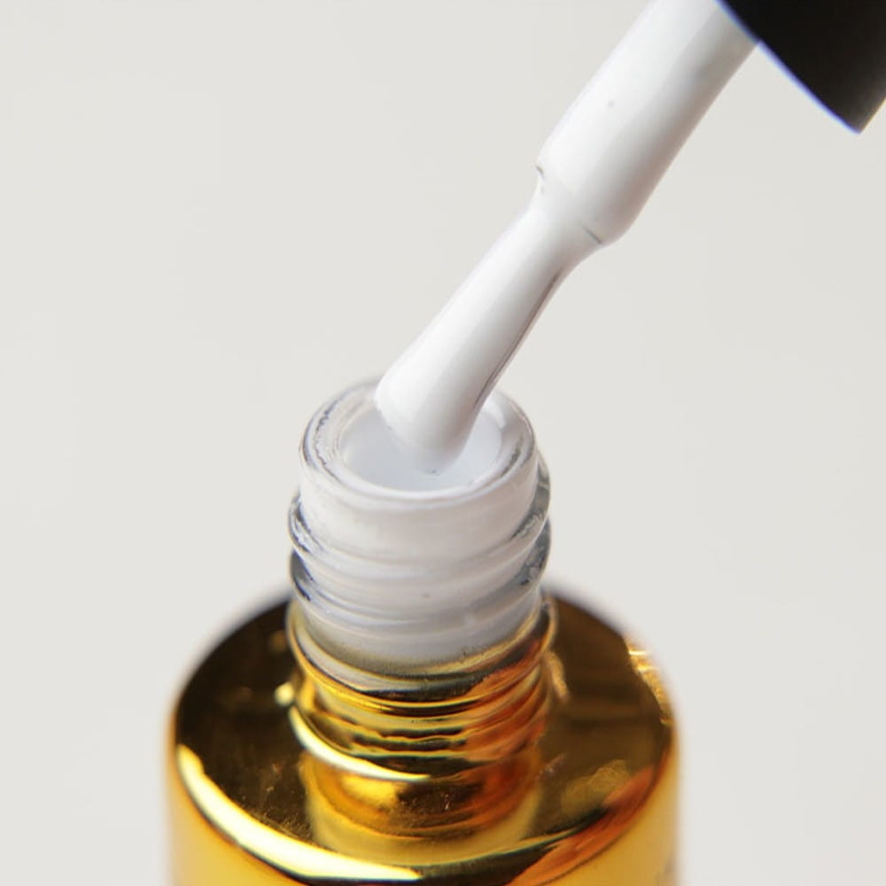 - W kolejnym etapie paznokieć pokrywamy podkładem, aby mocniej przykleić bazę do naturalnej powłoki. Po wyschnięciu (1 minuta) przystąpić do nakładania cienkiej warstwy podkładu . Następnie paznokieć można wysuszyć w lampie UV (36 W) – 2 minuty. lub lampa LED - 30-60 s.