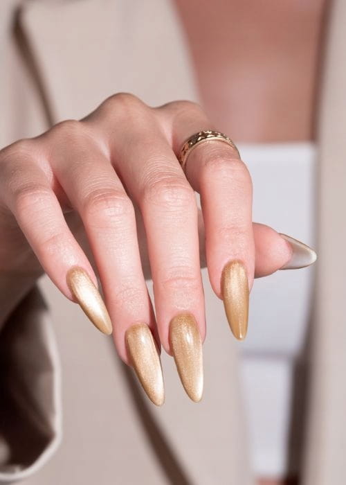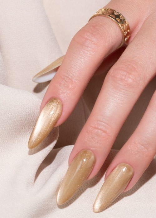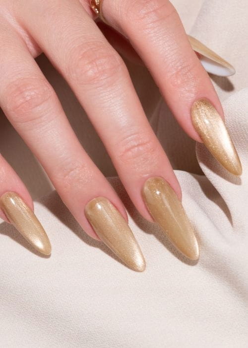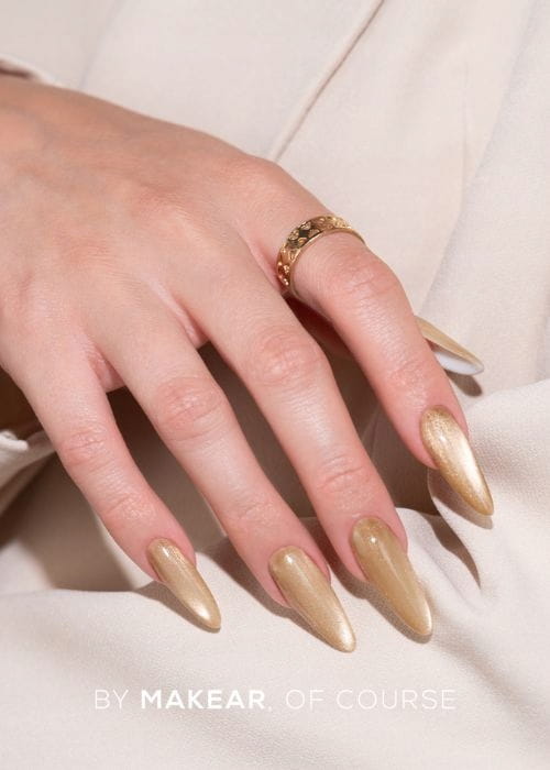 Wyrazisty odcień karmelu przełamany złotymi refleksami. Ciepły, energetyczny i magnetyczny – przyciąga spojrzenia, dodając paznokciom wyjątkowego charakteru. ➡ Perfekcyjny wybór na jesienne wieczory.