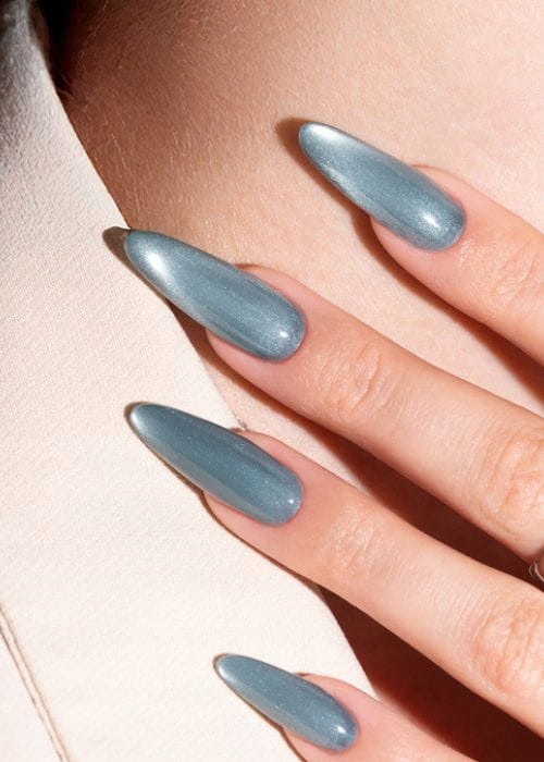 Głęboki granat z chłodnym połyskiem to kolor pełen tajemniczości. Efekt cat eye podkreśla jego intensywność, tworząc na paznokciach zjawiskową grę światła. ➡ Świetny wybór dla kobiet, które lubią mocne, wyraziste kolory.
