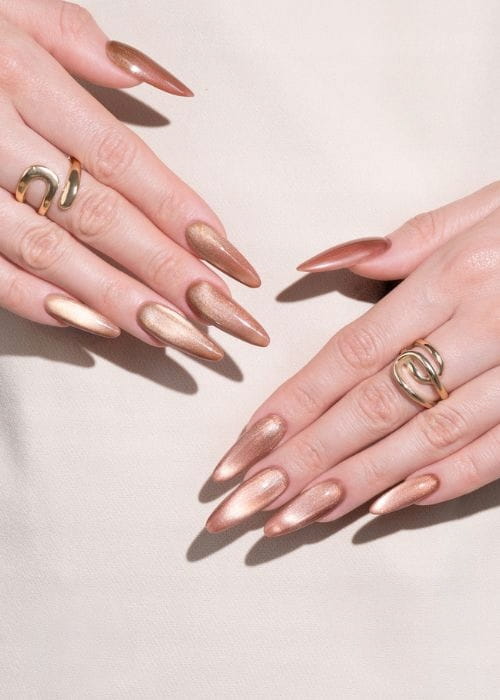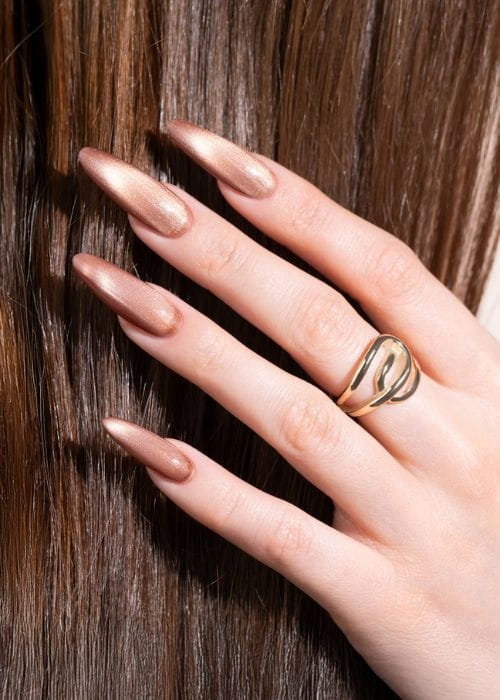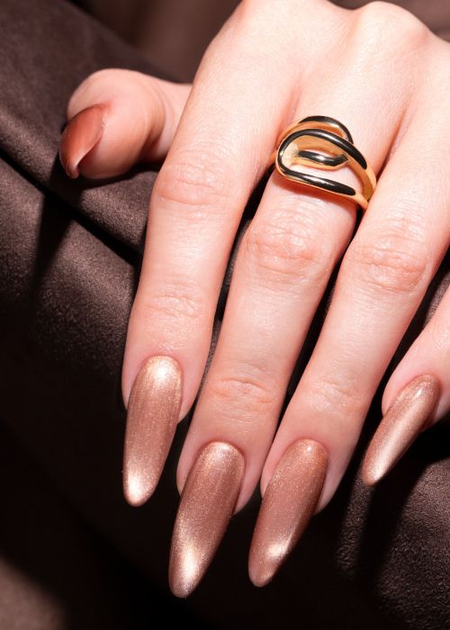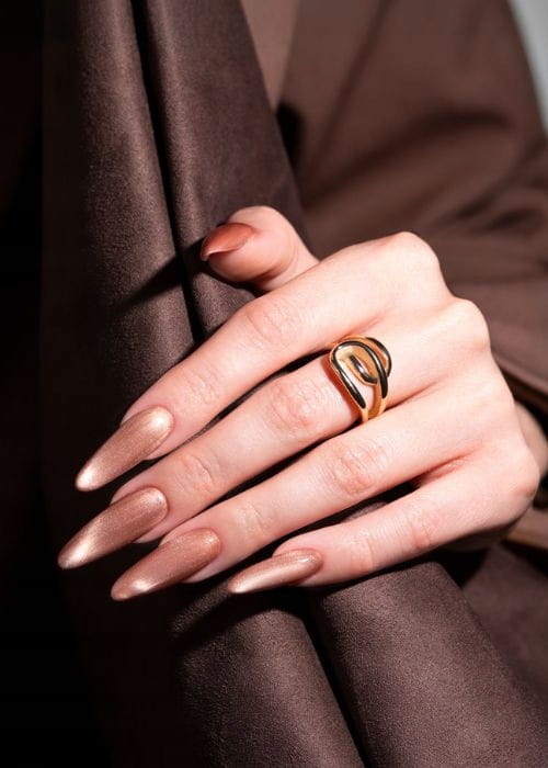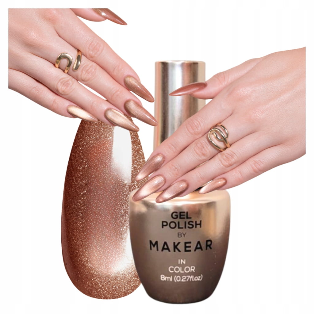 Ciepły, głęboki odcień brązu z nutą miedzi. Idealny dla kobiet, które kochają jesienne barwy i pragną dodać swoim paznokciom odrobinę luksusowego blasku. Magnetyczny efekt cat eye sprawia, że kolor nabiera głębi i elegancji. ➡ Doskonały wybór na co dzień i wyjątkowe okazje.