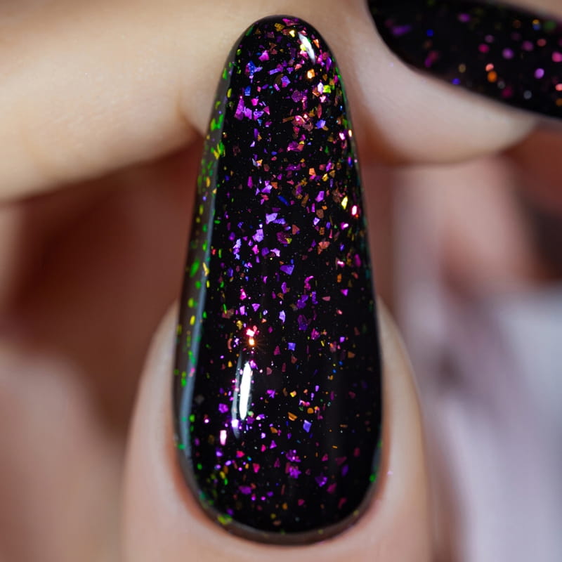 ✨ Odcień Holo Flakes to grubsze drobinki brokatu holo zanurzone w przezroczystym topie. Jest idealny na wiosnę ponieważ sprawi, że Twoje paznokcie zabłysną kolorami tęczy, a Twoja stylizacja będzie wyglądała magicznie i efektownie.