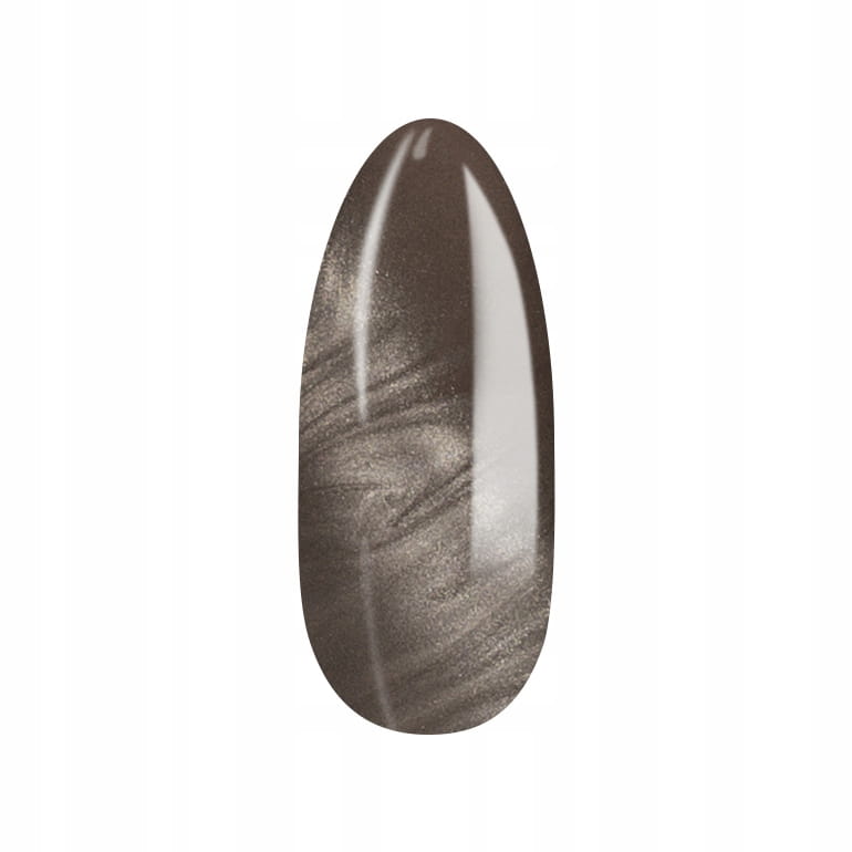 - Dodaj Efekt Cat Eye: Nałóż warstwę lakieru hybrydowego z efektem kociego oka. Natychmiast przyłóż magnes, aby uzyskać pożądany wzór. Utwardź.